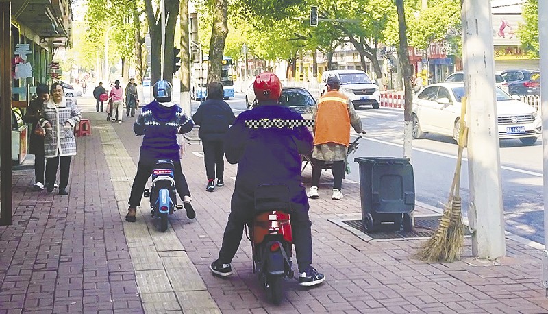 1月15日,记者走访中心城区各大街道,发现仍有不少车辆存在违反交通法规、不安全驾驶的问题存在,许多电动车驾驶者为图方便、省时间,在人行道上“横行霸道”,违反交通法规,造成安全危害。