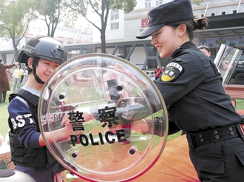 ▲学生体验警用装备。