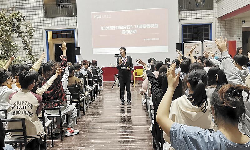 3月15日,长沙银行益阳分行特邀市反电诈中心的工作人员来到湖南工艺美术职业学院,开展3·15消费者权益保护教育宣传活动,提升学生金融素养,加大金融教育宣传力度。