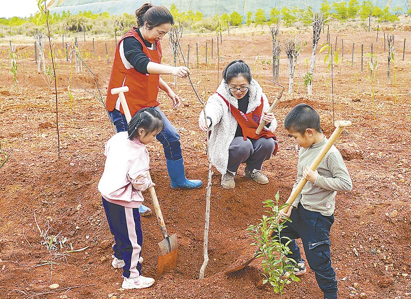 3月12日,市自然资源和规划局以家庭形式开展植树节主题活动,25户家庭55人在中心城区会龙山废弃的大河坪矿山旧址栽种了260余棵橘子、杨梅、枇杷等果树。