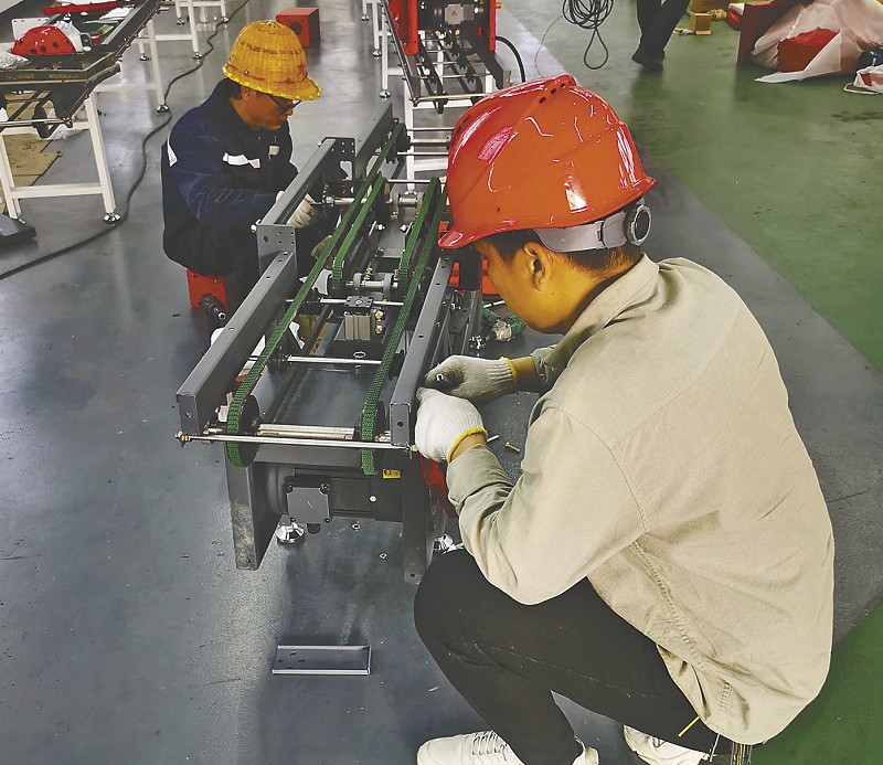 ▲富佳科技的工人生产、安装育秧播种流水线。