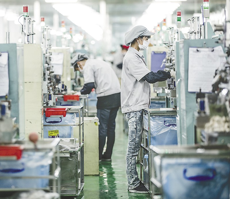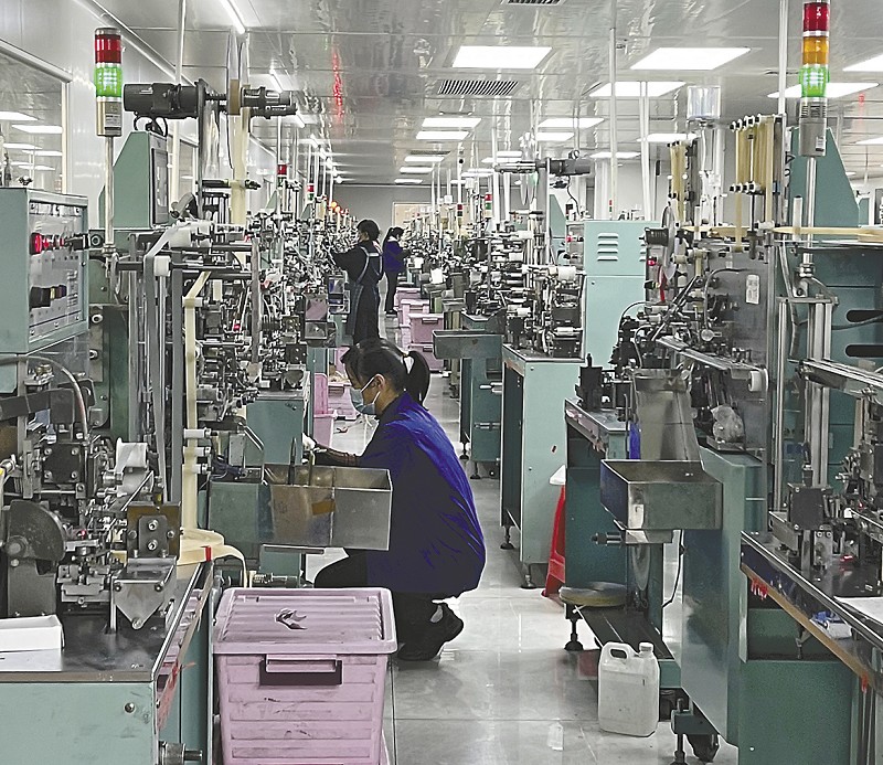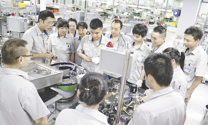 艾华集团的工人专注于设备操作,确保生产平稳有序。