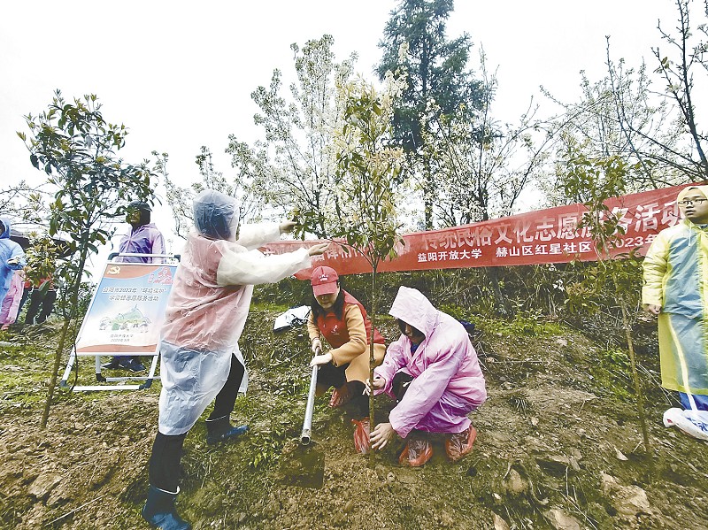 好雨知时节,当春乃发生。3月19日,益阳开放大学组织70余名志愿者前往赫山区会龙山街道红星社区,开展“四季同行·雷锋家乡学雷锋”传统民俗文化志愿服务,冒雨开展植树、整治人居环境等活动。