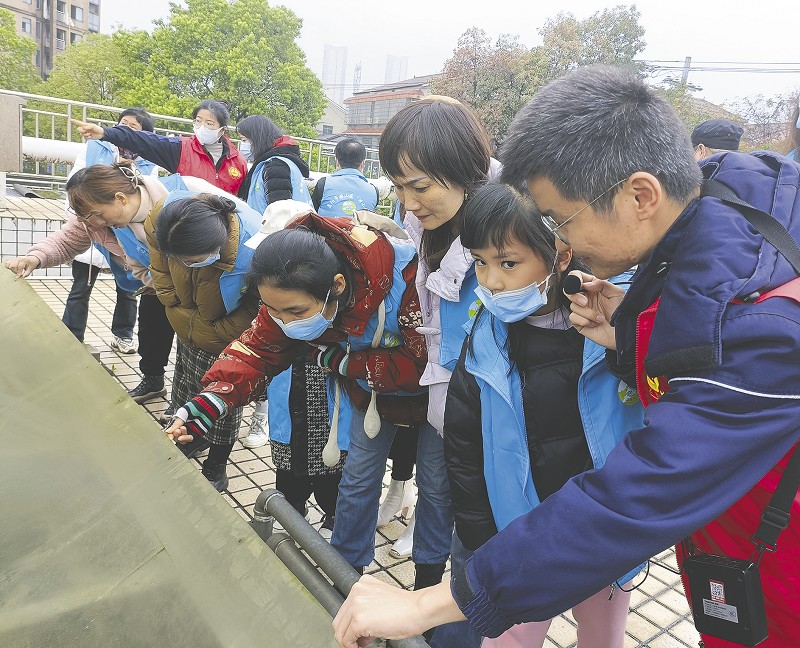 志愿者了解污水处理的工艺流程。