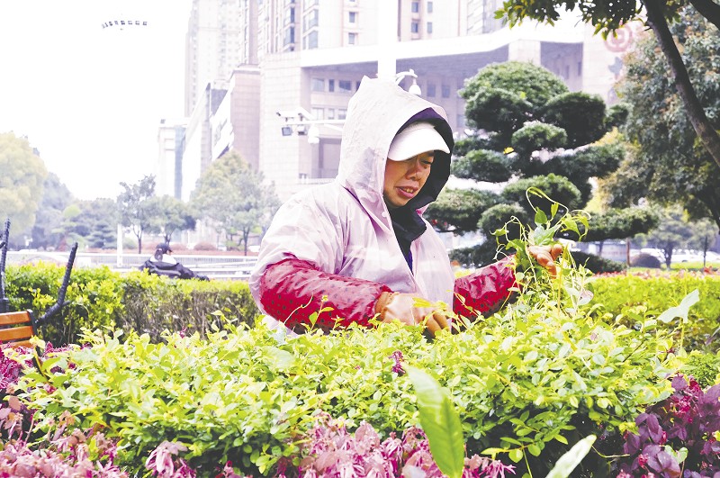 当日15时,在益阳日报新闻大楼前坪,来自益阳市园林绿化建设养护有限公司的工作人员身披雨衣,穿梭在灌木丛中。他们为绿化带修剪整形、除草灭虫,地毯式清理杂草,最大限度美化环境。“雨天视野不好,需要集中注意力寻找灌木丛里面长出来的杂草,有些还需要顺着藤枝钻进去拔。”园林工人赵春说,当天大家从益阳大道与金山路交汇处的环岛开始园林绿化工作,根据公司的安排,在哪里下车便在哪里清理杂草,用实际行动为创建全国文明城市添一把力。