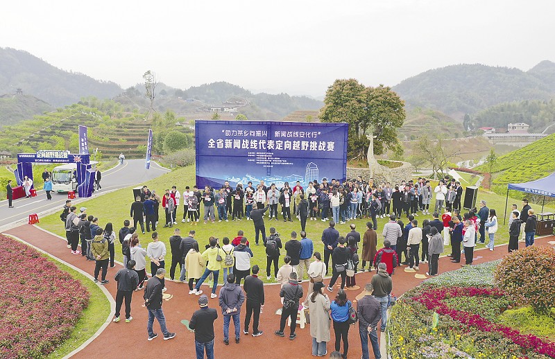 ▲全省新闻战线代表在茶乡花海进行定向越野挑战赛。