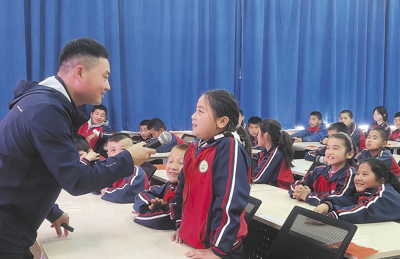 援教老师吴智在国语课上与当地孩子互动。孙殉华摄
