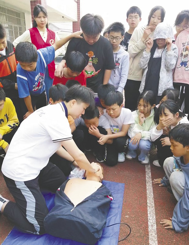 宣讲团成员结合当前实际情况,重点宣讲了各种救生方法,并组织师生开展防溺水安全演练,指导师生正确使用各种救生工具和如何进行正确的心肺复苏,还与同学们进行了知识问答互动。同学们认真听讲,积极互动,课堂气氛热烈。