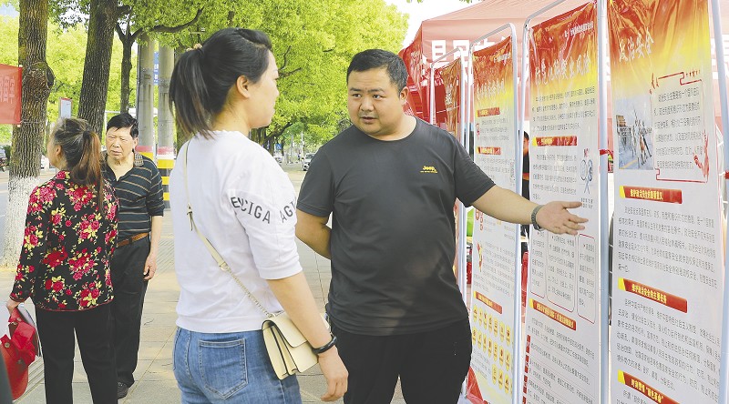 4月17日,在资阳区鹅羊池广场,市委政法委联合资阳区委政法委开展全民国家安全教育日集中宣传活动。过往市民纷纷领取资料、阅读展板内容,并就遇到的有关问题向工作人员咨询。