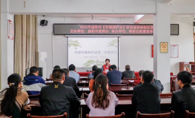 5月11日,市政府办组织志愿者走进赫山区桃花仑街道茶亭街社区,开展创文志愿服务活动,宣讲环境保护法律法规。