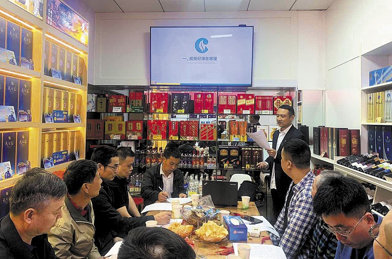 益阳烟草纪检监察人员向卷烟零售户宣讲纪律、规矩、要求。