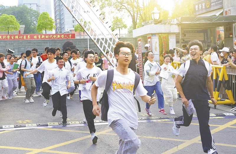 高考圆满落幕,考生们飞奔出考场。姚靖怡摄