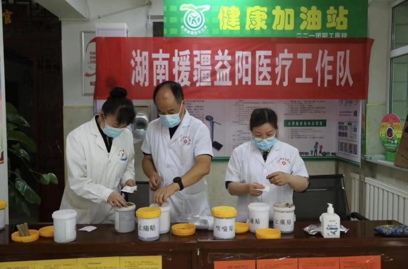 入疆以来,益阳市医疗援疆工作队结合工作实际,切实为辖区群众办实事,有效缓解群众看病难题。为做好此次“三伏贴”活动,益阳医疗援疆工作队积极联系协调市第一中医医院提供药品,为辖区群众提供了便利。