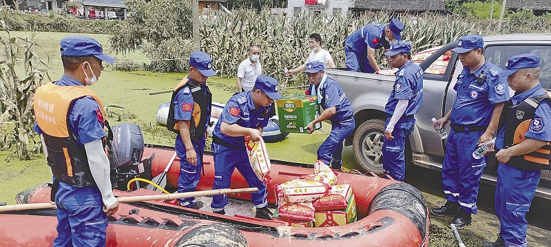 新华救援队队长赵新华和11名主力队员紧急出征,7月2日14时,他们开着2辆车携带3艘冲锋舟赶到保靖县。7月3日,“蚂蚁社工”在保靖县、吉首市紧急采购矿泉水800件、自热米饭200箱、大米90袋、食用油50大桶,维持灾民一周的正常生活。