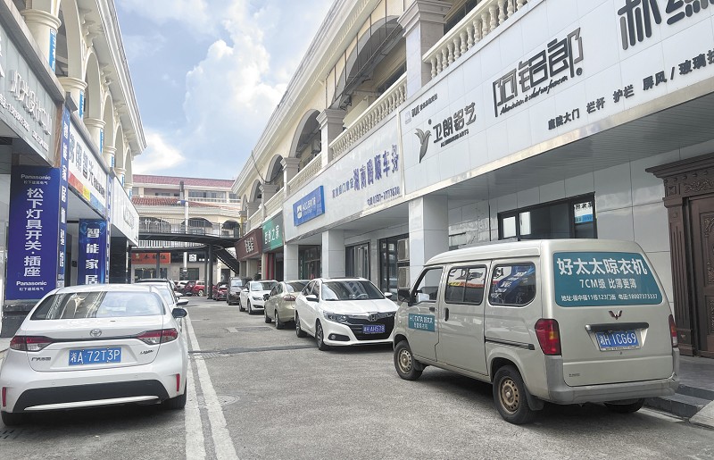 福中福商业广场车辆乱停乱放占用道路。