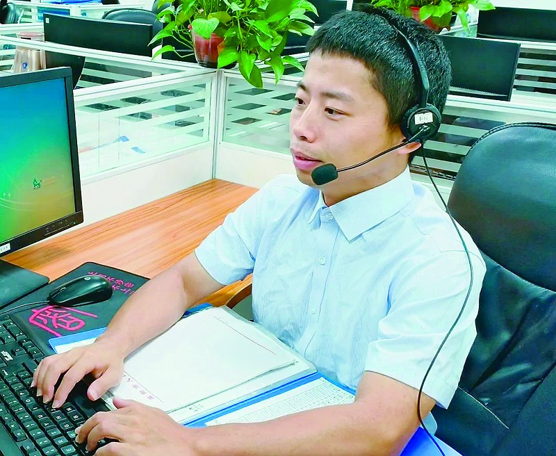 ▲莫兆其认真接听群众来电。王冬妮摄