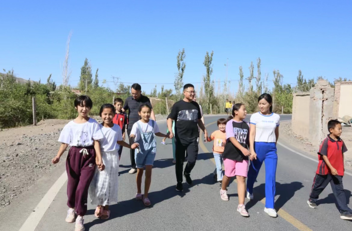 挂职二二一团学校副校长的盛叶红告诉我,亚尔果勒村一组有58位小学阶段学生,援疆老师专门为他们办了一个普通话培训班,每周星期五中午1小时文化“加餐”,寓教于乐,让孩子们爱上了汉语。赛比海·阿山是盛叶红的结亲学生,7月份参加了益阳湘兵文化交流夏令营活动,分享在益阳的所见所闻,让赛比海·阿山成了村里的小红人。“你们的援疆老师很优秀,我小孩在二二一团学校读初中,前不久参加一个全国比赛获了奖,老师指导很给力。”双休日,我陪同援疆工作队负责后勤的张如波同志到吐鲁番农贸市场买菜时,守摊的邓大姐听说我们是援疆工作队的,主动上前帮忙选菜送菜。她舍近求远送小孩到二二一团学校就读,看中的是这里的教师认真负责,教学质量高、环境好。
