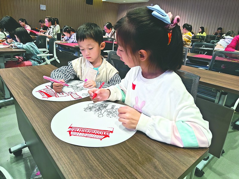 科技馆内,孩子们忙着画心目中的祖国。李娜摄
