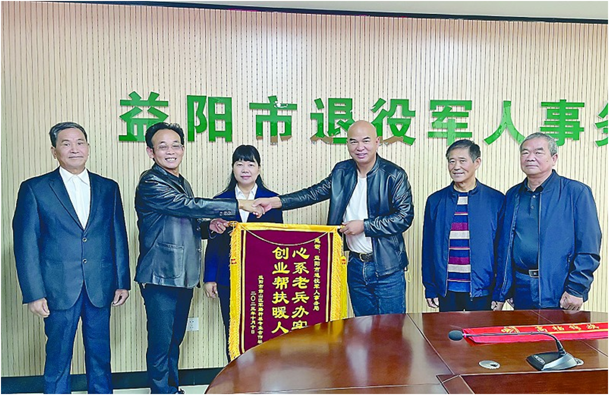 10月11日上午,赫山区军腾种养专业合作社负责人毛最先将一面绣有“心系老兵办实事 创业帮扶暖人心”的锦旗送到市退役军人事务局工作人员手中,感谢该局在他遭遇葡萄滞销难题时伸出援手。