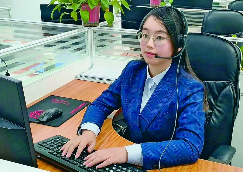 ▲ 谢姣边接听群众来电边记录工单。 王冬妮摄