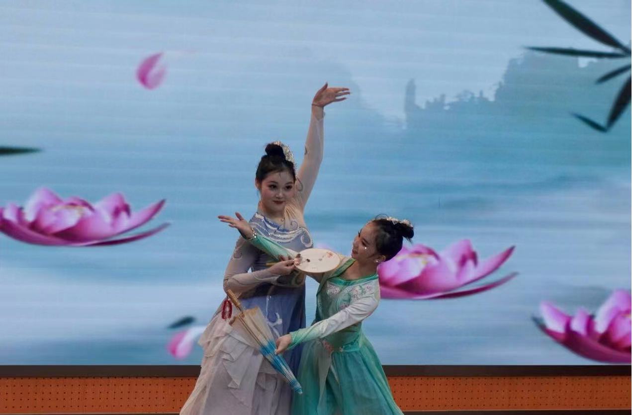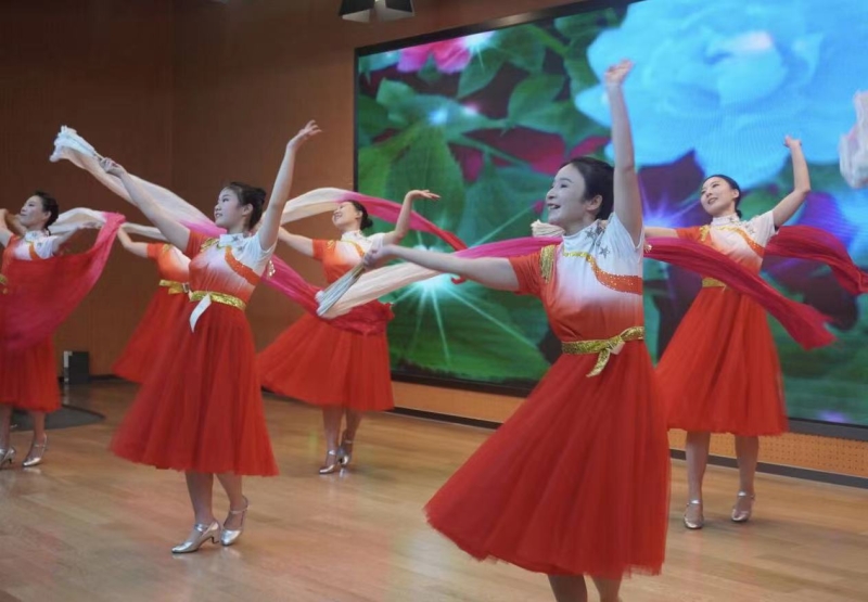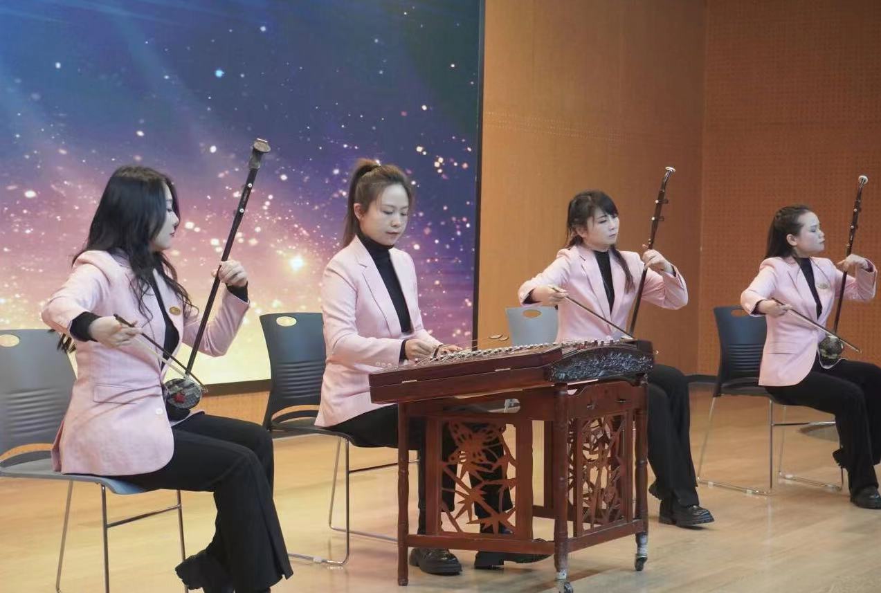 轻弹慢拨声乐起,紧拉急奏气韵来。本次音乐会在民乐合奏《喜洋洋》中拉开序幕,紧接着一首男女声小组唱《我的情歌》,让现场观众感受到节日的欢快氛围。舞蹈《相亲相爱》、朗诵《风过江南》、女声四重唱《紫罗兰》等,使现场气氛逐渐热烈。口琴+小提琴+萨克斯合奏《贝加尔湖畔》展现了一幅清澈又神秘的画卷,让在场观众沉浸在那绿草如茵的氛围里。最后,音乐会在饱含热情的主旋律歌舞《领航》中落下帷幕。