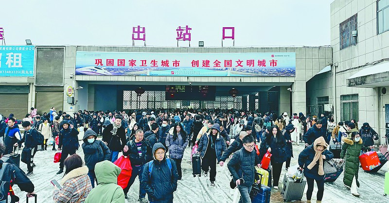 2月4日,雪中的益阳火车站出站口,一幅人潮涌动的画卷。回家过年的人们脚步匆匆,期待早日与家人团聚,共度春节。刘行剑摄