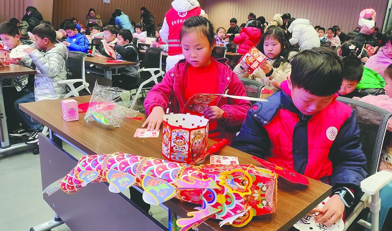 小朋友参加“金龙塑福灯”活动。(照片由郭亮红提供)
