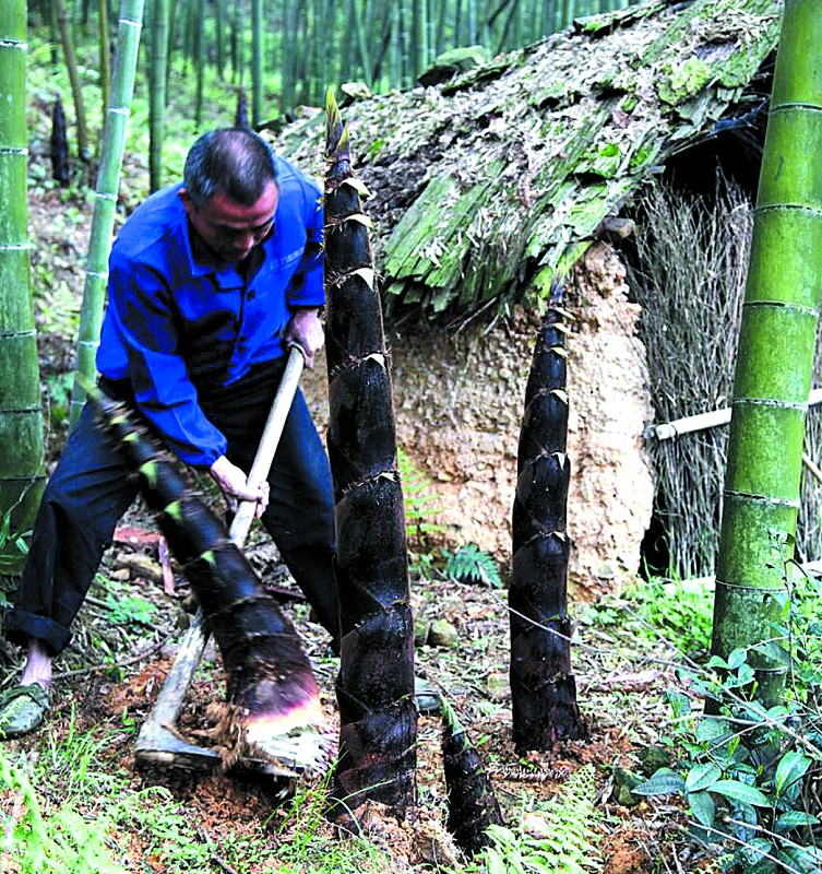 桃江县马迹塘镇村民在山上采挖春笋。夏训武摄