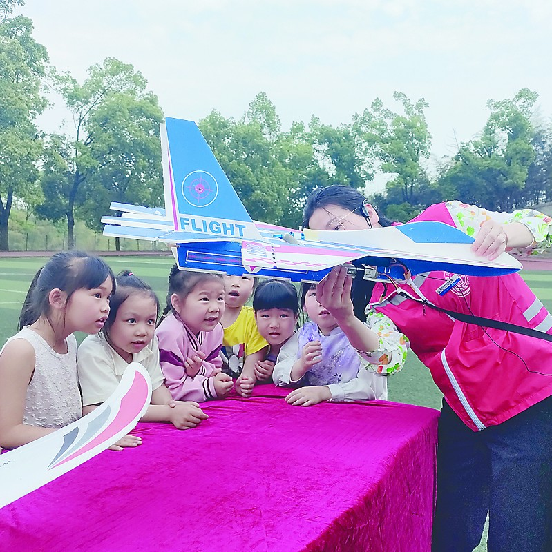 科普课后,科技志愿者来到操场,为小朋友展示陨石样本,并进行航模飞行表演、智能机器人表演等。“学生们第一次见到机器人做着各种不同的动作,第一次与机器人互动,都是全新的体验,在他们的心里埋下了一颗科普启蒙的‘种子’。”学校相关负责人喻先英说。