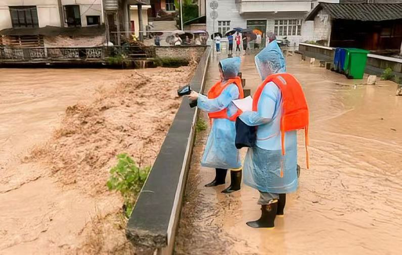 由于青山站区域点降雨量骤增,短时间达200m m的点降雨量导致部分路段山体滑坡,原本距离不长的站点,几番周转,可行的路线一改再改。风雨之中,两个单薄的身影,在满是泥泞的路上快速前行。肆虐的洪水,已漫过桥堤。瘦弱的她们毅然上桥,手持仪器,不惧艰险一次次地测量水位、流速等关键数据。“9时35分,相应水位95.67米,测得实际流量440立方米每秒。”两位骨干最终测得了宝贵的最高洪峰数据。