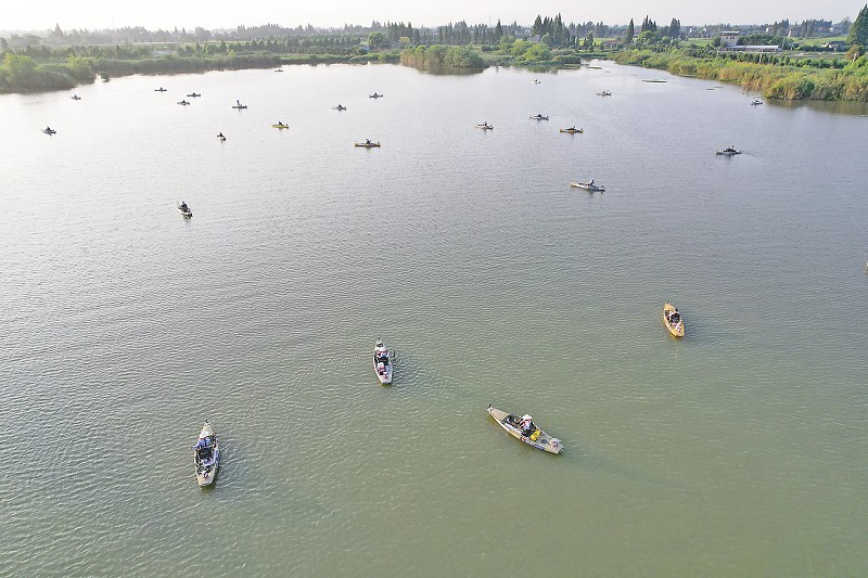 8月24日上午,参加2024年中国舟钓(路亚)公开赛—湖南南县站的近百名选手驾驶小舟,在南县琴湖公园的比赛水域熟练地抛竿、收竿,尽情享受着垂钓之乐。据悉,此次比赛为期两天,冠军选手将获得舟钓世界锦标赛参赛资格。 任杰 摄