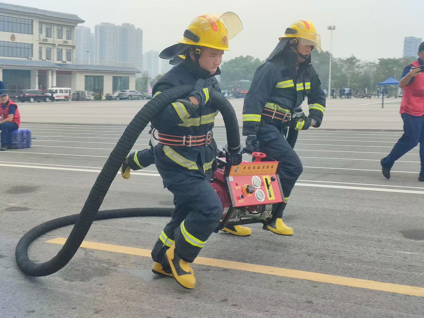 本次比武,7个县市区共选派15个乡镇代表队90人参加。比武分为理论和实操两部分。两天时间里,选手们进行了应急理论知识笔试竞赛、人员搜救、1000米徒手跑、水罐消防车一车两枪操、手抬机动泵出水操等5个项目的大比拼。比赛现场,在人员搜救项目中,每队6名队员需分工合作,无人机搜索确认伤员目标后,4名队员需徒步跑到目标处,用担架迅速将“伤员”抬往指定地点并立即进行心肺复苏。在水罐消防车一车两枪操项目中,参赛队员迅速穿戴好全套防护装备,一边奔跑一边用手连接消防水器、水带、水枪,2支水枪射流需全部超越终点线。每个项目均考验选手的耐力速度、动作是否规范、操作是否娴熟。