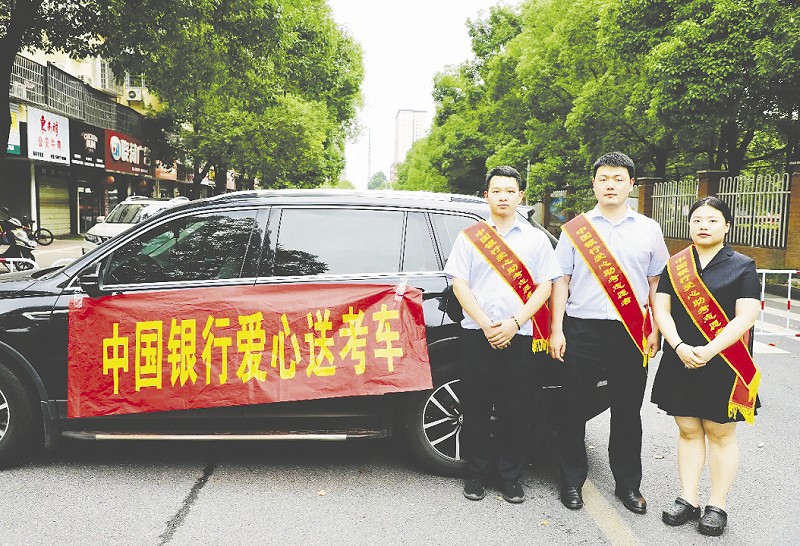 中国银行益阳分行南县支行积极践行社会责任,高考期间开通“便民爱心送考车”免费接送考生。