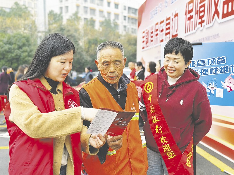 中国银行益阳分行志愿者在中心城区福中福商圈宣传金融知识。