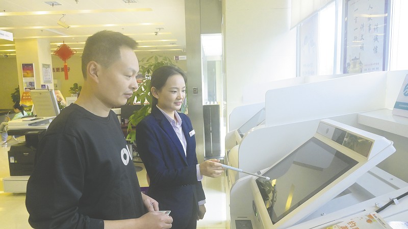 光大银行工作人员引导客户办理业务。刘美玲摄