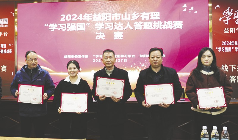 12月27日,“深学笃行新思想,聚力奋进新征程”益阳市山乡有理“学习强国”学习达人答题挑战赛决赛在益阳书城举行。来自市直部门各单位的16位选手,经过激烈比拼,分获一二三等奖和优胜奖,8家单位获优秀组织奖。