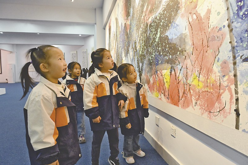 艺术作品斑斓的色彩引来孩子们的惊叹。