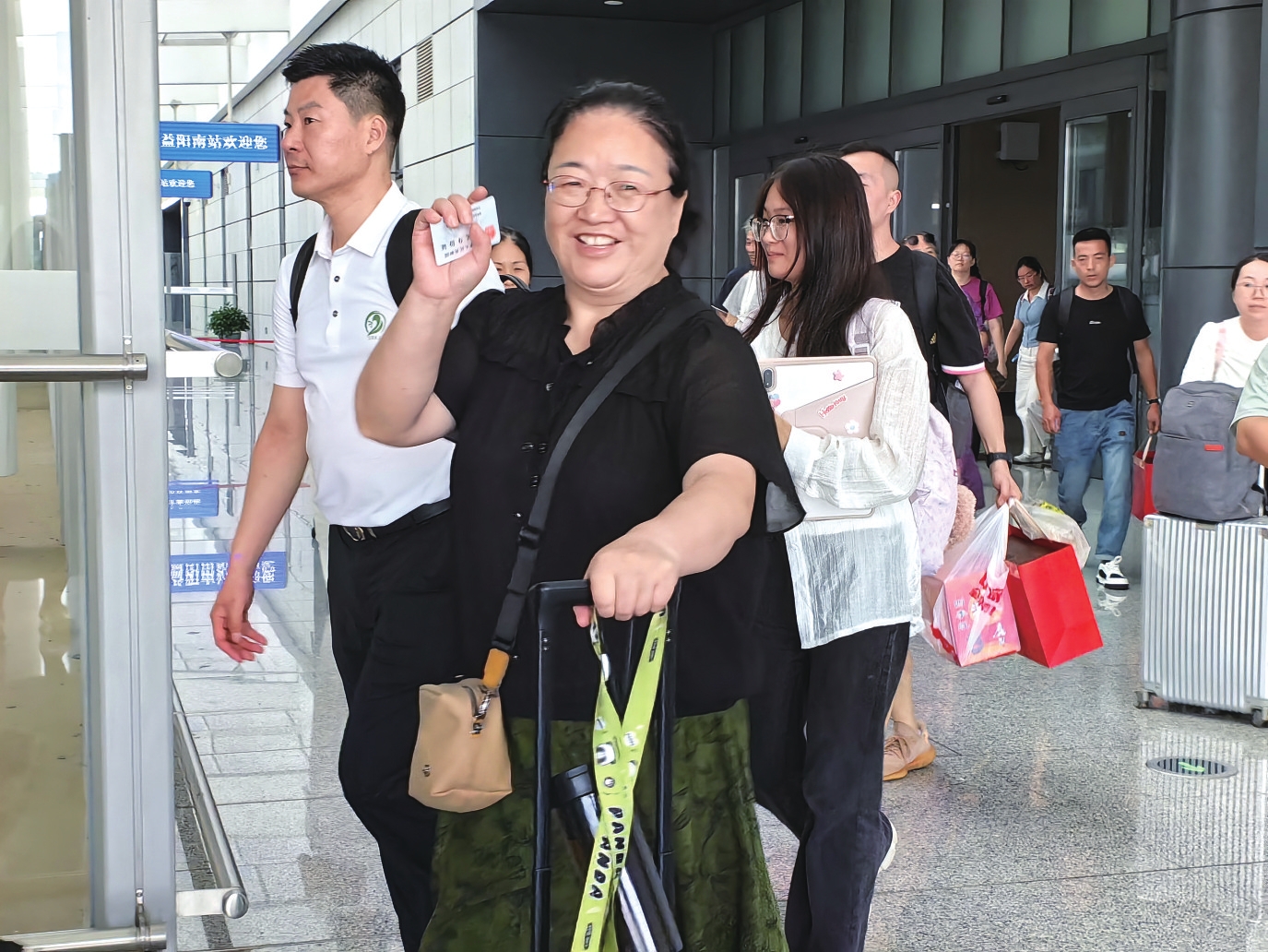 “太幸运了,抢到了首趟车的票,一家人正好趁着假期去重庆玩一玩。”6月28日13时30分,正在高铁益阳南站候车厅候车的刘女士开心不已,一家四口打算乘坐新开通的渝厦高铁渝黔段列车,前往重庆游玩。14时许,从长沙开往重庆东的G4972次列车停靠益阳南站,几分钟后,复兴号列车加速驶出站台,标志着我市首批乘高铁直达重庆东的旅客正式开启旅程。