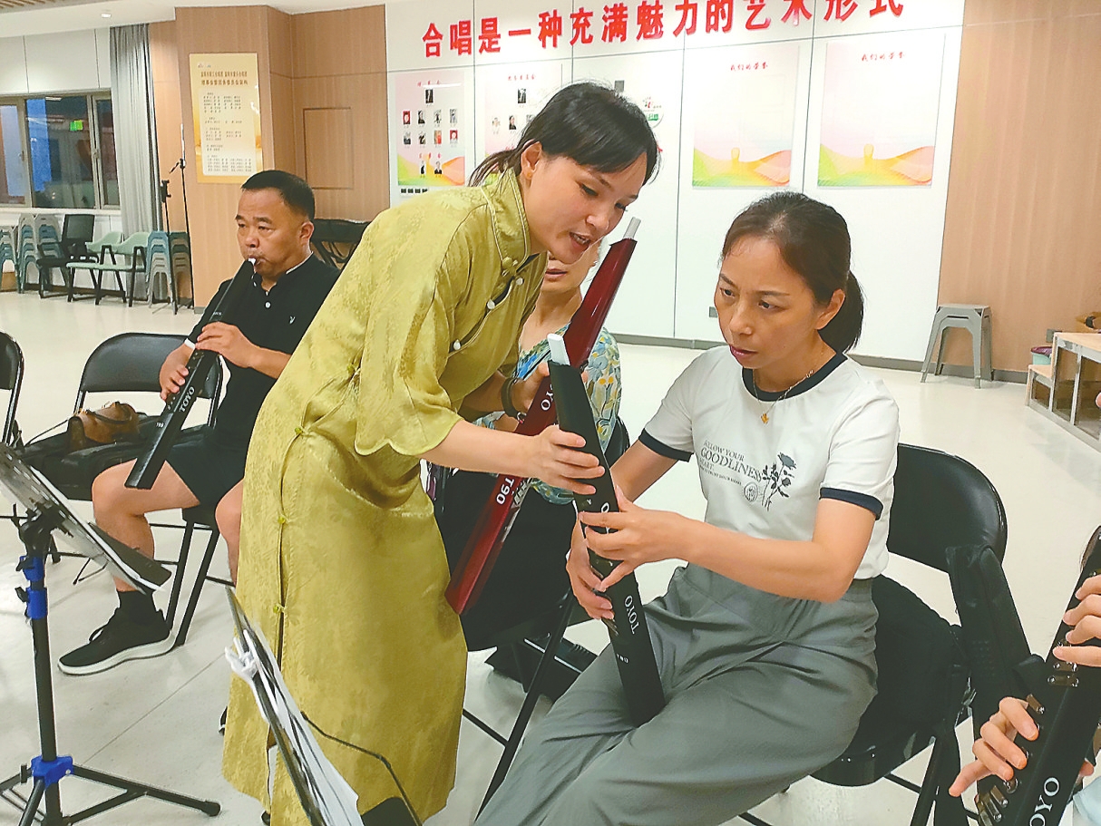 电吹管老师对学员的指法进行指导。苏钢摄