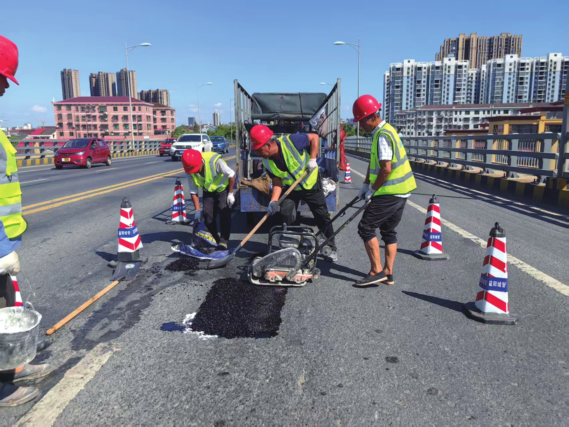 此次维修共修补桥面坑洞25个,填充桥面缝隙24条,清理堵塞的塞雨水箅子22个,维修面积达100多平方米。