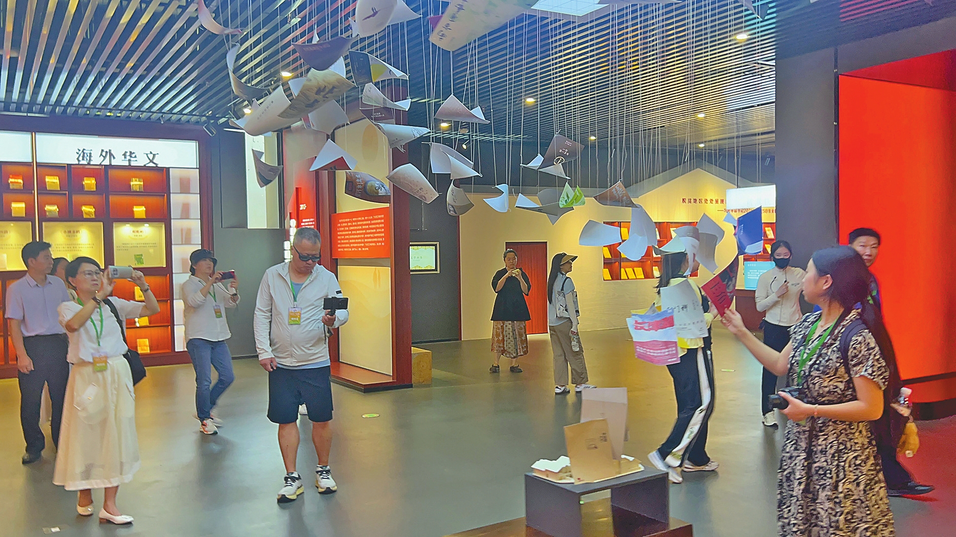 海外华文媒体代表打卡中国当代作家签名版图书珍藏馆。甘果摄