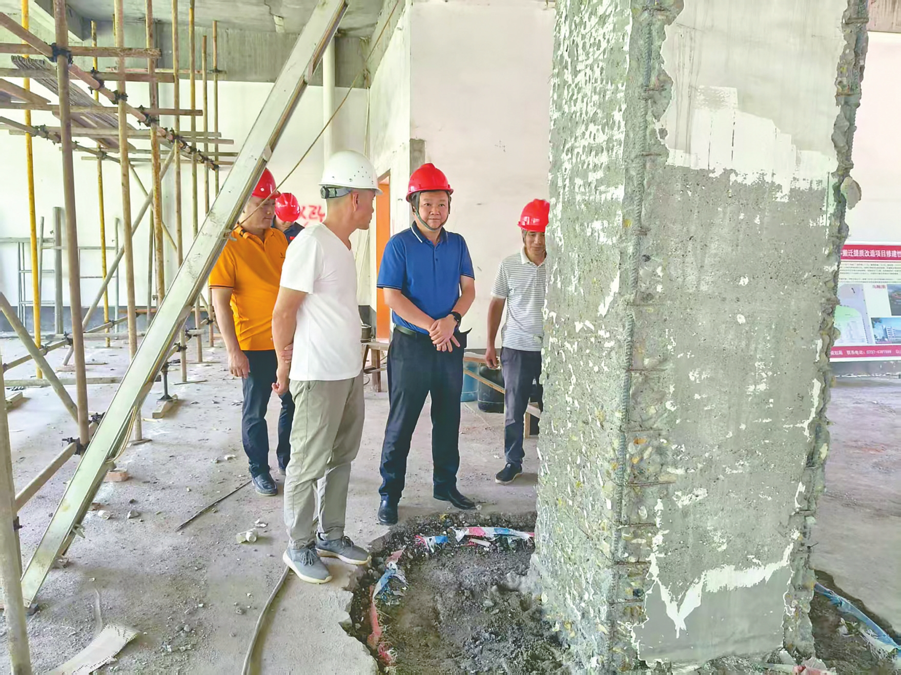 市少年儿童体育学校整体搬迁提质改造项目相关人员查看施工进度和质量。(市少年儿童体育学校提供)