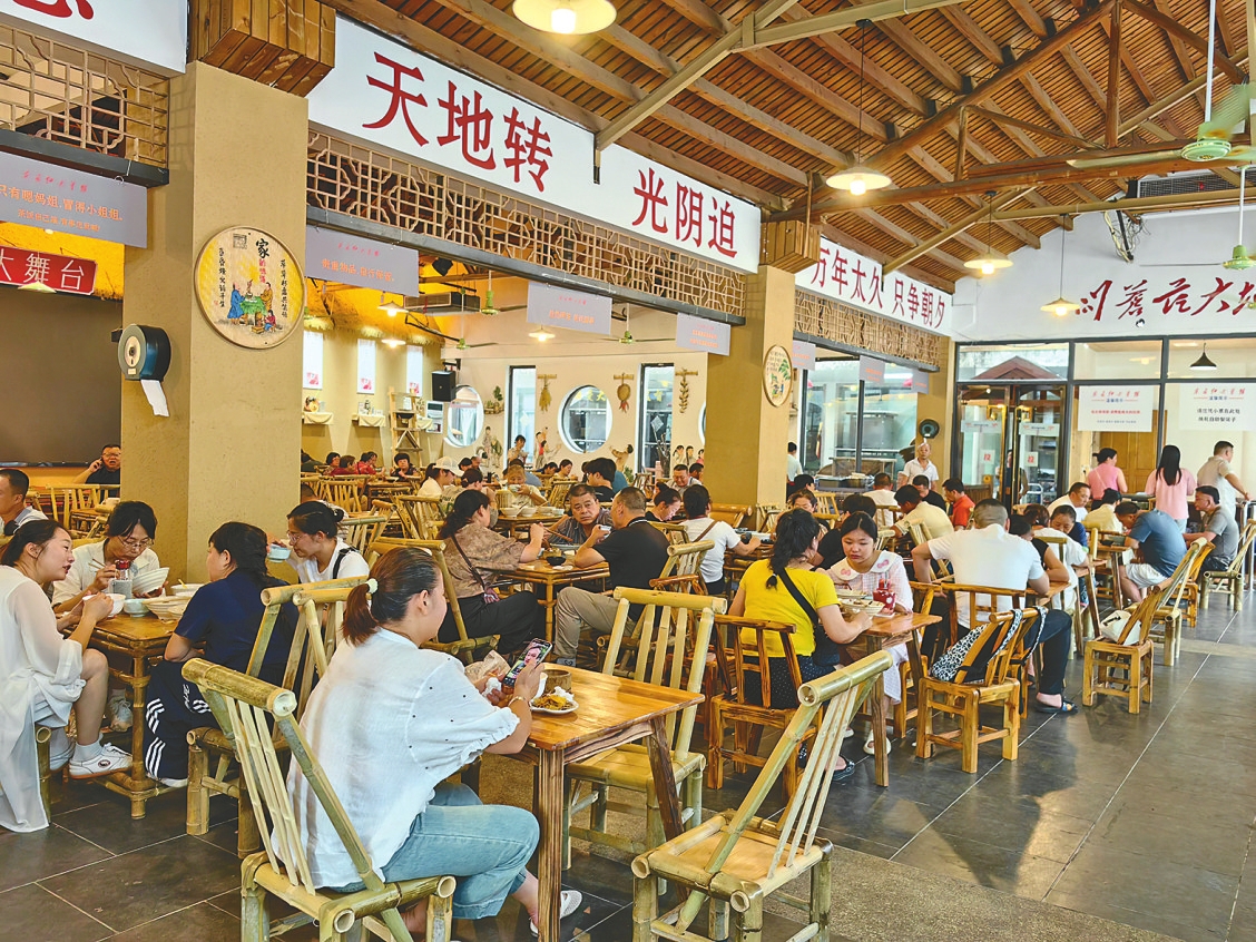 银城第一庄负责人夏峻敏告诉记者,这里最早是做农家乐,生意最红火的时候有120名员工,后来农庄生意下滑,去年改成火锅城,谁知生意更加惨淡,目前只剩20多名员工。“生意最差的时候,一整天都没生意。”夏峻敏表示,有客人上门,饭店才能维持,员工的工作才能保得住。一个月前,饭店开辟出一块区域,尝试做符合大众消费需求的自助餐,同时经营平价茶馆,还有免费戏曲表演,让消费者花十几元钱就能在这里待上一整天。目前,东方红茶馆成了市民追捧的热门打卡,每天吸引六七百人来用餐,日均营业额7000元。在人气的带动下,饭店的宴席、包厢用餐、点餐等都呈上涨趋势。