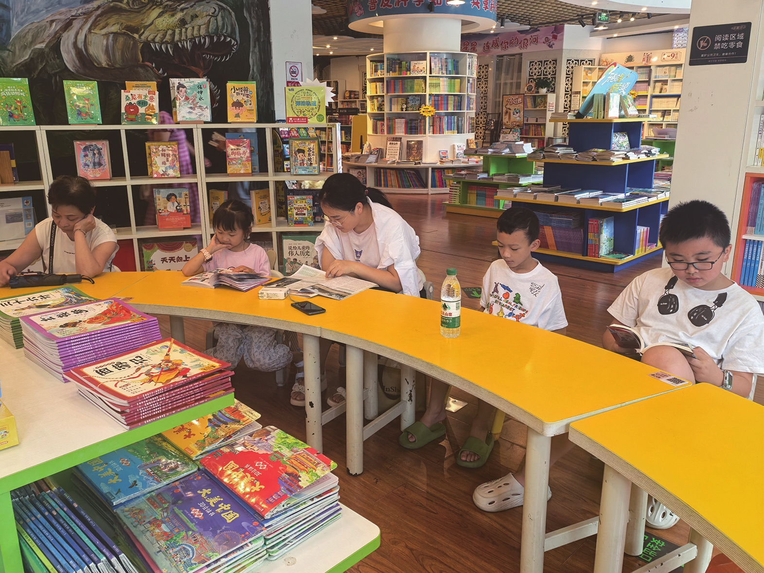 8月21日中午,市新华书店内人头攒动。一楼儿童阅读区的凳子上坐满了正在安静阅读的孩子和家长;二楼是教辅材料等专业书籍选购区,不少家长带着孩子仔细挑选所需读物;三楼环境静谧,众多备战考公考研的青年学子在桌前埋头研习。店长黄琼艳欣喜地说:“每天中午是入店阅读的高峰期。7月以来,读书购书群体超过2万人次,比往年增加了不少。”