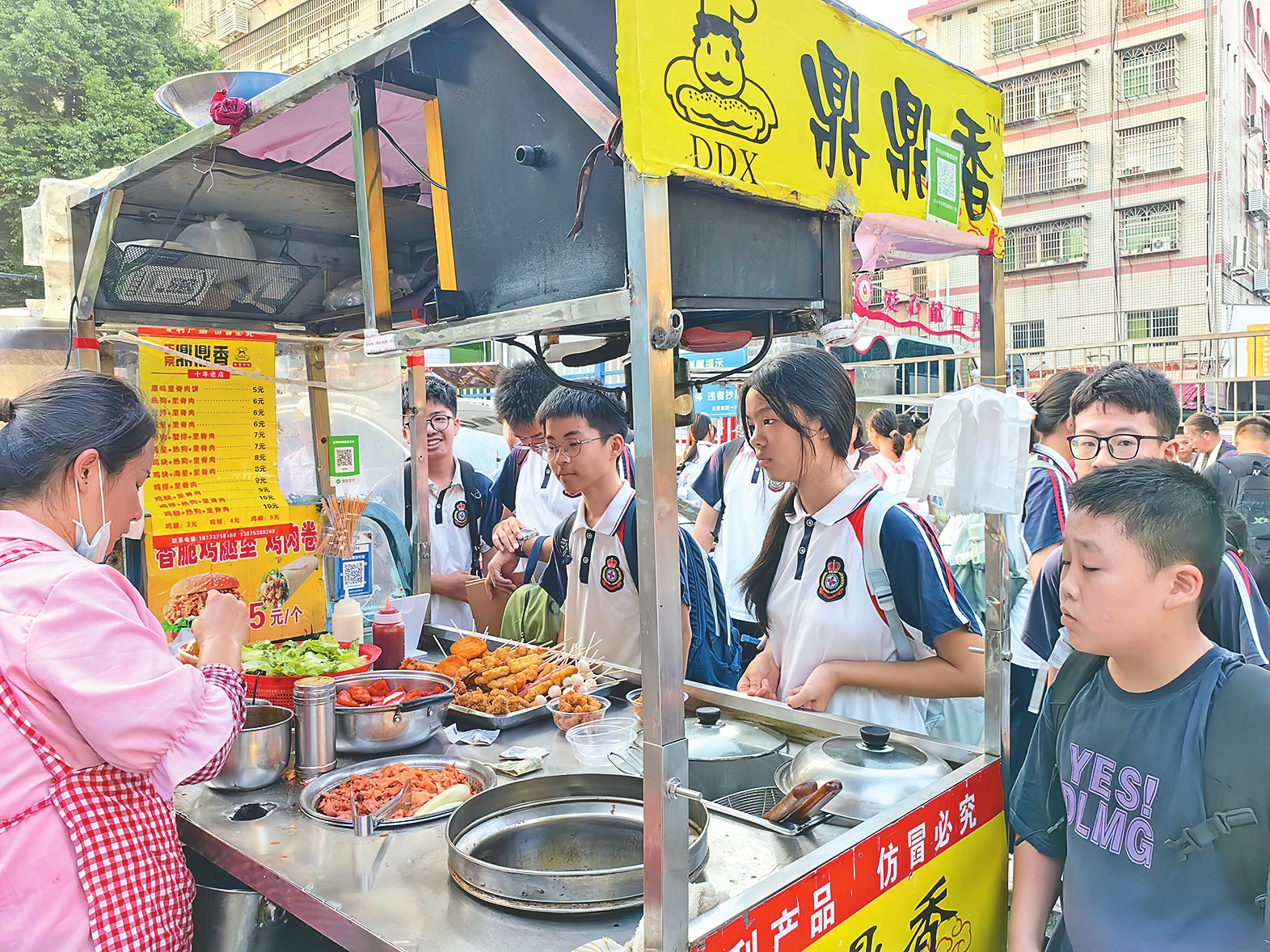 既担心食品安全问题又拗不过孩子想吃,只好硬着头皮买,是大部分学生家长的一种矛盾心理。“这些食品里肯定有很多添加剂,有的摊主手套、口罩也不戴,打包的盒子一看就不是食品级的,不敢让孩子多吃,只能让他偶尔解解馋,尽量绕开这里,不看到就不会想着要吃了。”家长伍女士告诉记者,这些流动摊贩经营设备简陋,食材来源无保障,且大多露天售卖,周围车来车往,灰尘、尾气极易造成食品污染,平时很少让孩子购买流动摊贩的食品。