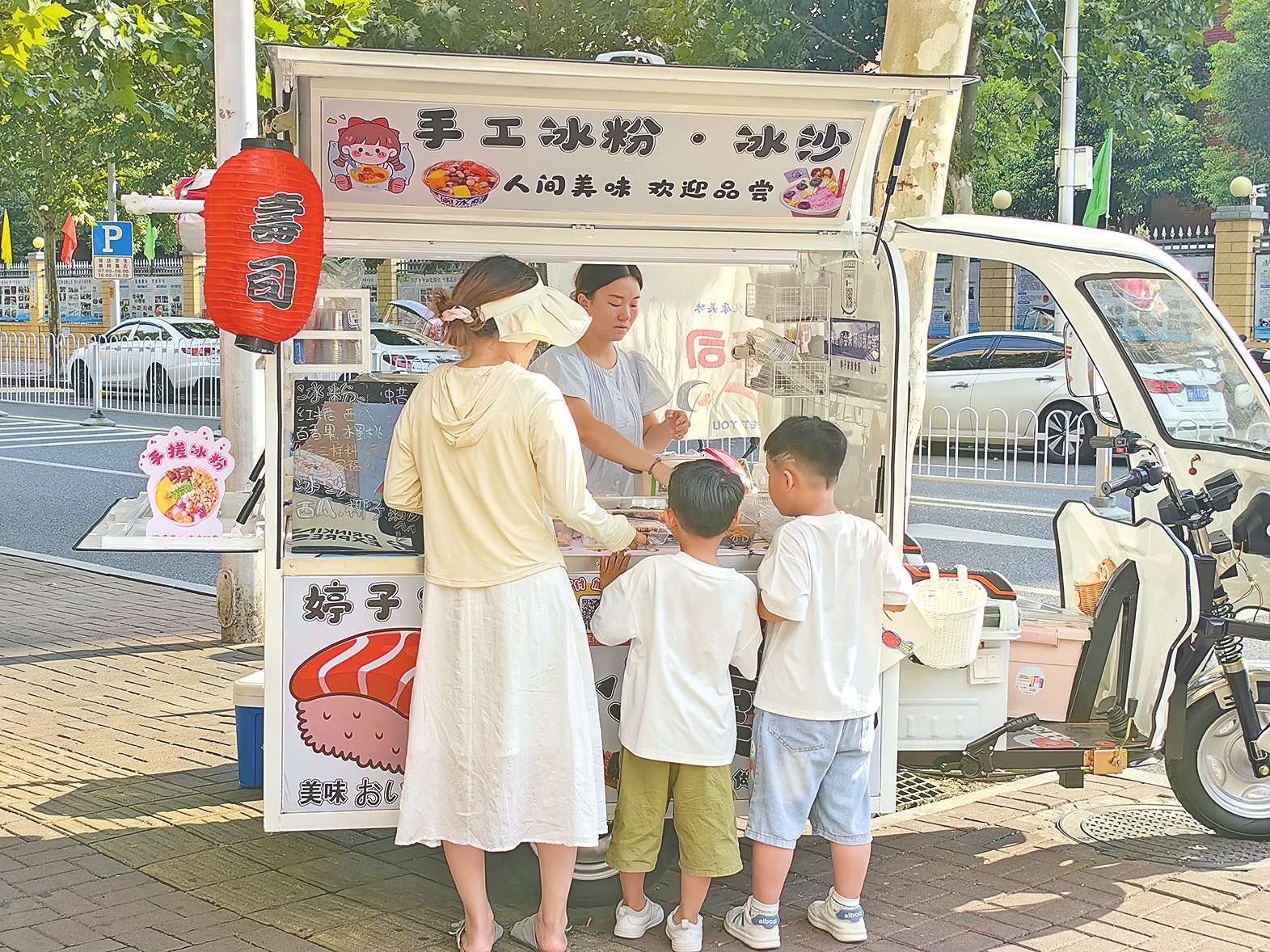 闻着香味、循着叫卖声,一波波刚放学的小学生兴冲冲前来购买。在一个甜品摊位前,两名家长正在排队等待摊主制作绵绵冰。等待期间,当看到摊主往塑料杯子里加各种色泽鲜艳的食材,便皱着眉头问:“这加的是什么,五颜六色的”“如果是吃了对身体有害的东西就别放了”……摊主赶紧解释:“这都是健康的食材,主要是芒果、牛奶、白砂糖,都可以放心吃。”两名家长本来还想说什么,见一旁的孩子已高兴地接过高颜值的绵绵冰,津津有味地吃了起来,便只好厉声叮嘱:“明天不许吃了,这东西吃多了对身体不好。”