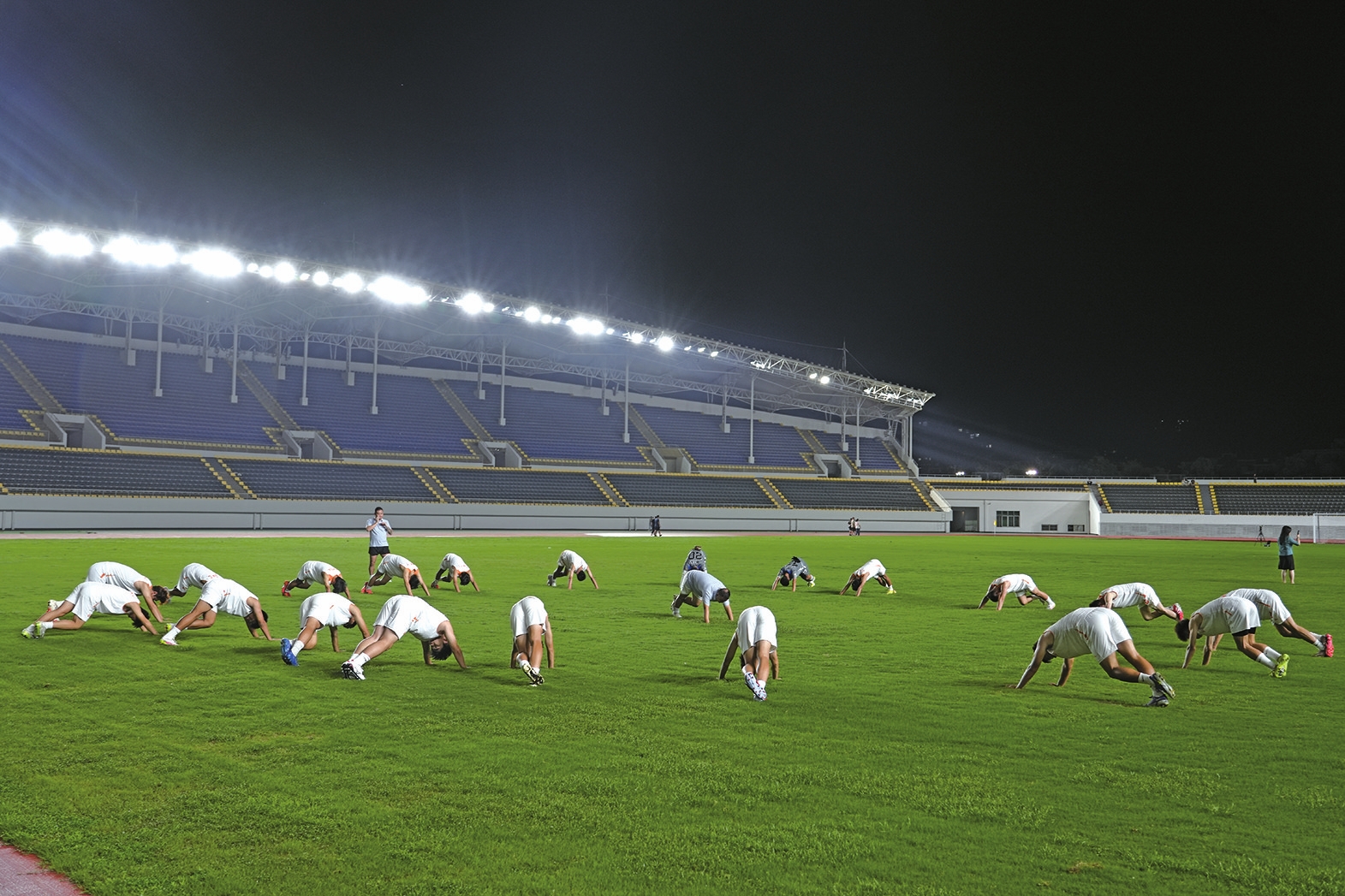鲜艳的橙色与闪烁的光影交织,将赛前的氛围烘托得愈发热烈。