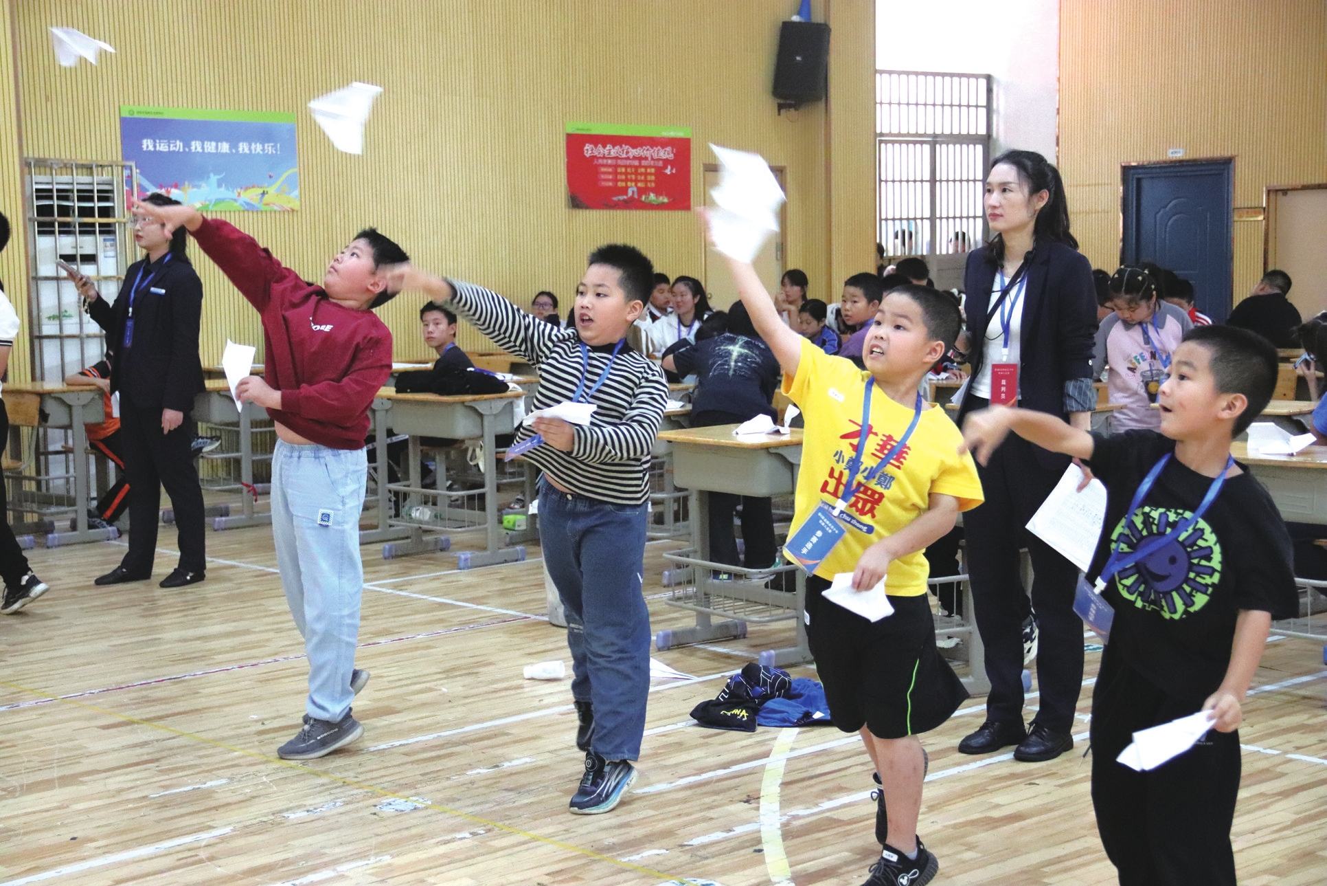 孩子们在进行“纸飞机托起太空梦”比赛。(市科技馆提供)