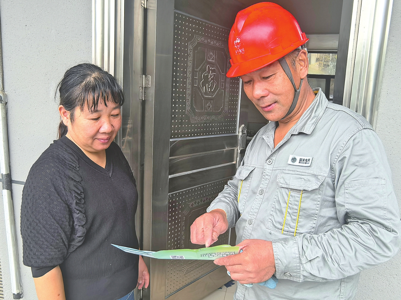 电力工作人员向群众普及安全用电知识。何雅娴摄