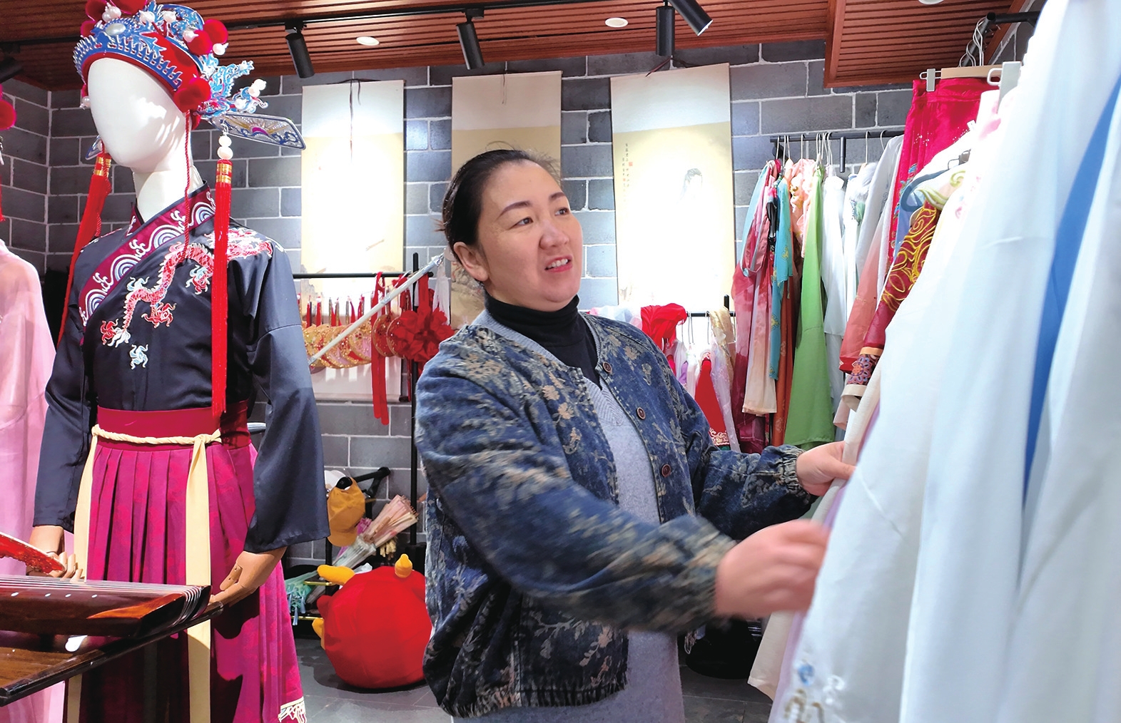 王渝翠整理给游客试穿的汉服。陈徐文倩摄